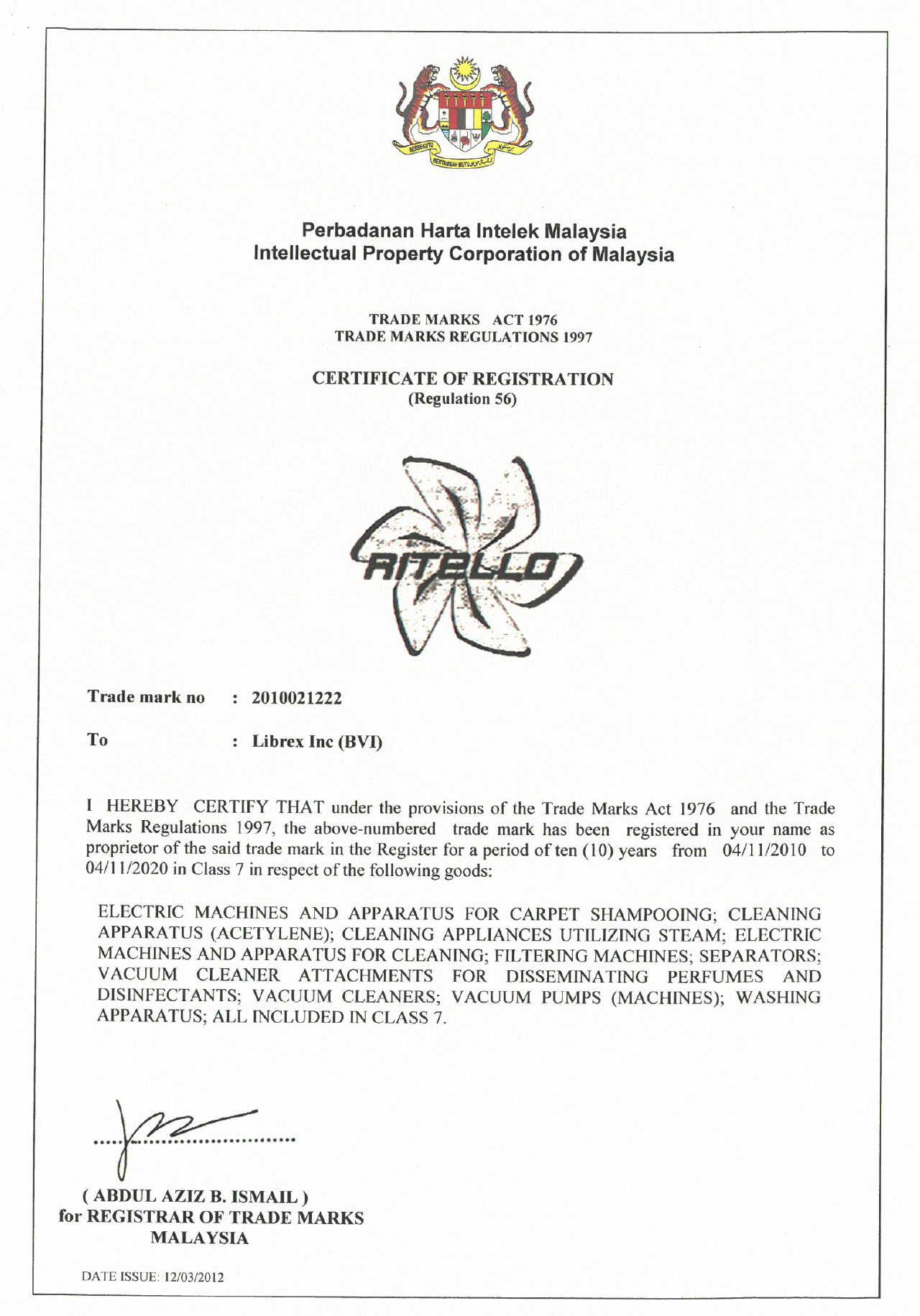 Të gjitha licencat dhe markat tregtare të shfaqura në këtë sit i nënshtrohen të drejtave të markave tregtare të Librex Inc., Librex Holding Inc. dhe Librex Group Inc. kompani. Këto marka tregtare përfshijnë, por nuk kufizohen në, emra të markave të produkteve (p.sh., Ritello, PowerBrush, AquaJet, AquaSet, R2, Renaissance, Premium, Rollbrush, Rollwash, Purello, R1, SE, DP2, etj.) Logot dhe stemat. Ndalohet rreptësisht përdorimi i paautorizuar i çdo marke tregtare të shfaqur në sit.